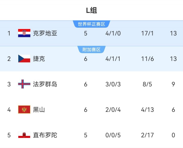 在目前的积分榜上,法罗群岛3胜3负排名小组第3,其中两场胜利是在直布罗陀身上获得的。最后两轮比赛他们将对阵小组前二克罗地亚和捷克,在首回合对阵这两支球队时,法罗群岛也只是1球落败。虽然几乎不可能在世界杯上看到这个北欧群岛的身影,但还是可以期待他们能否带来更多惊喜。