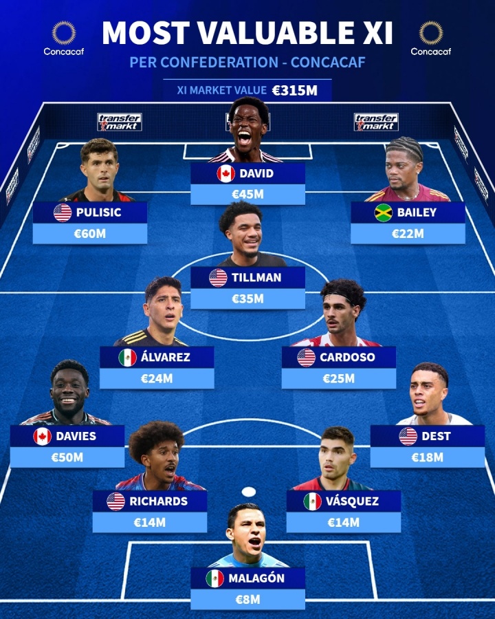 总身价3.15亿!中北美最贵阵:普利西奇领衔 戴维斯在列,美国5人
